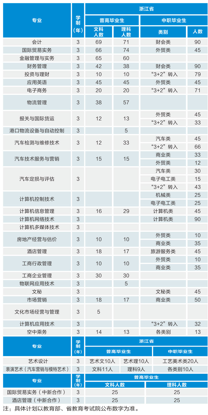 浙江经济职业技术学院2010年单考单招计划表